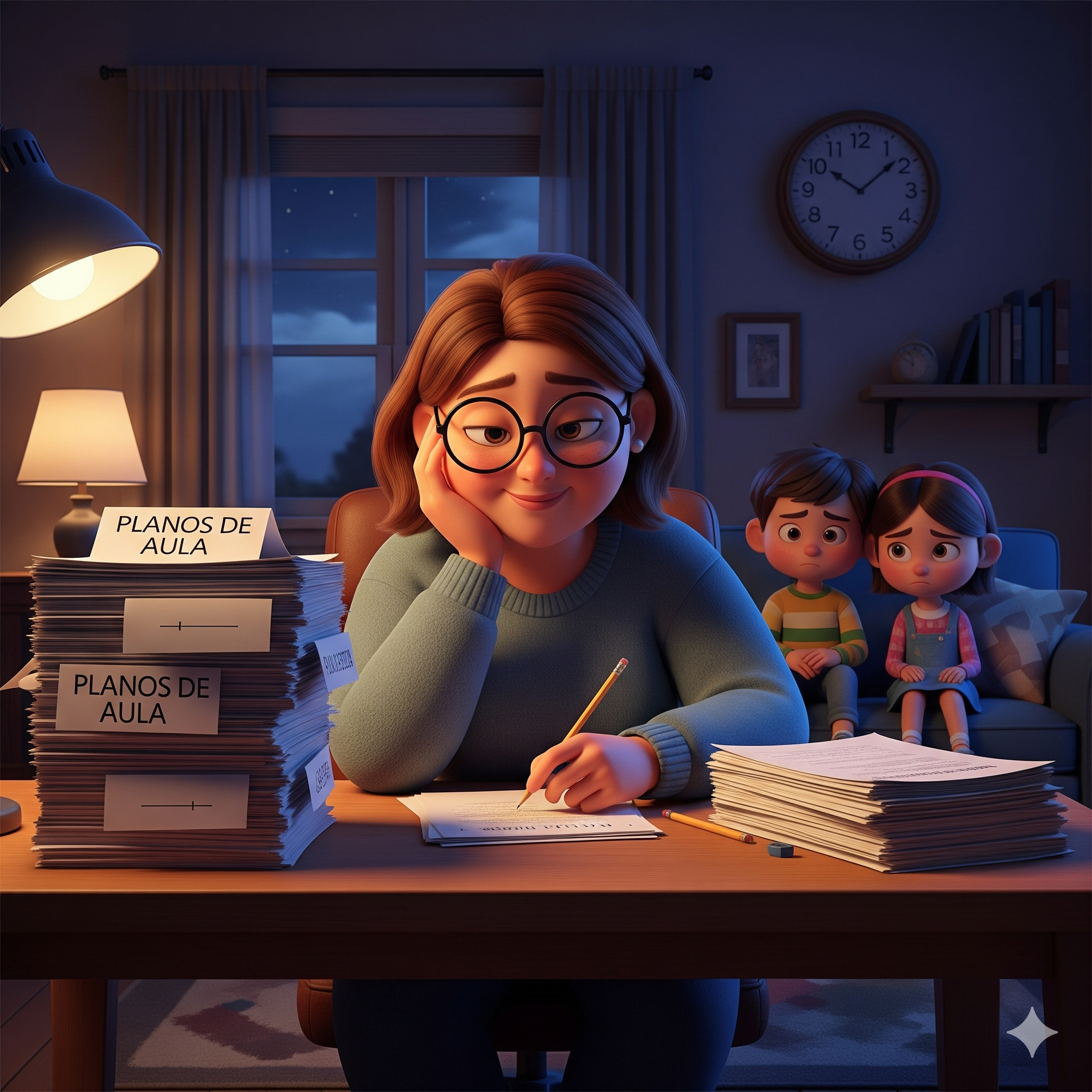 Depois de horas em sala, sobra pouco tempo para você. Mesmo assim, é preciso levar trabalho para casa: montar planos, criar atividades, revisar conteúdos e tentar seguir cada detalhe da BNCC. Esse processo é cansativo, confuso e ocupa justamente o tempo que deveria ser seu — para descansar, estar com a família ou simplesmente recarregar as energias.