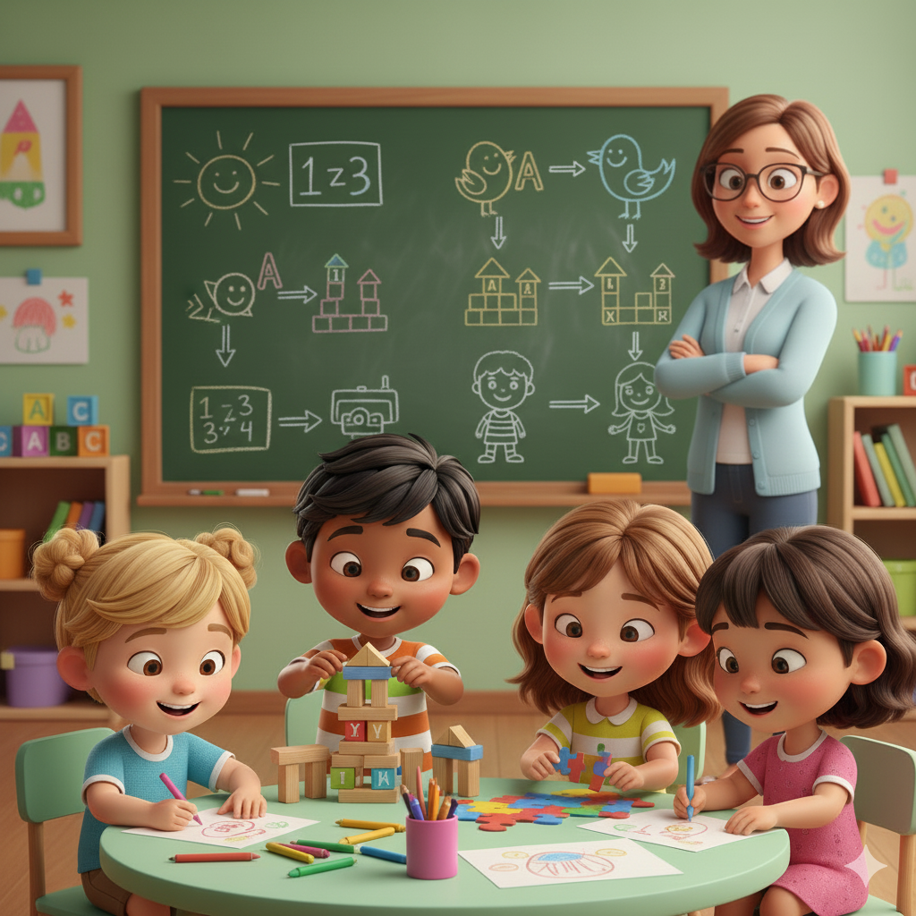 Cada atividade é elaborada para estimular o desenvolvimento integral — cognitivo, motor, social e emocional — sempre alinhado à BNCC e inspirado em métodos de ensino reconhecidos internacionalmente.